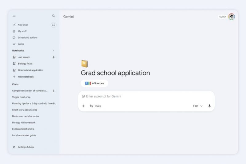 Notebooks are now available for free Gemini app users