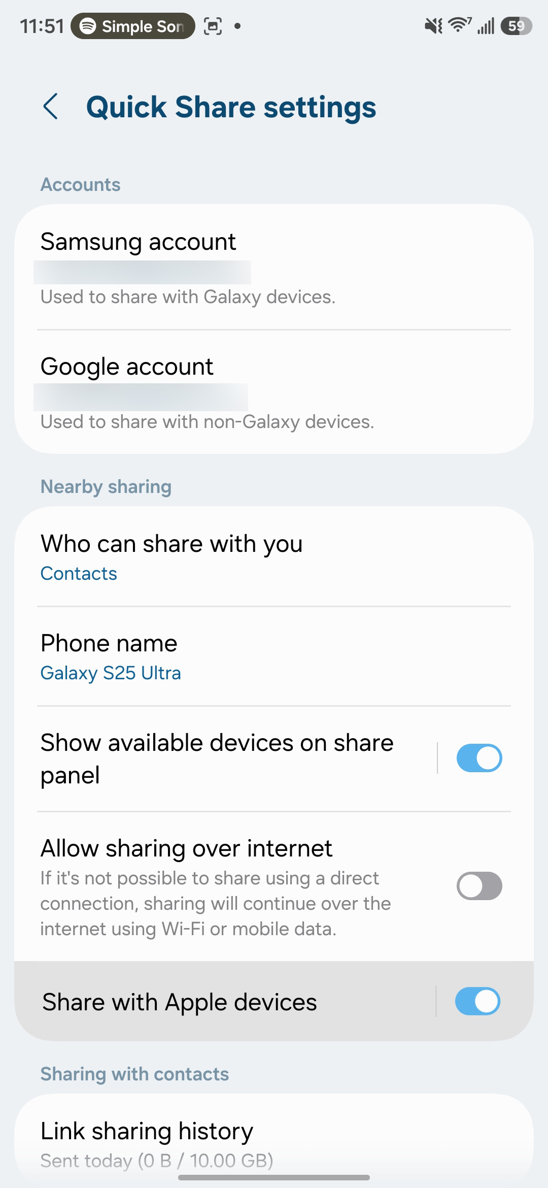 The folks over at GalaxyClub noticed that, if you sideload the needed app updates, AirDrop functionality appears on some older Samsung Galaxy devices. The needed versions are Quick Share v13.8.51.58, Quick Share Agent v3.5.22.24, and Quick Share Connectivity v1.5.13.15. And, sure enough, running the latest updates via the Galaxy Store on a Galaxy S25 Ultra on the One UI 8.5 beta does indeed leave the device with an added “Sharing with Apple devices” menu, just like the Galaxy S26 series.