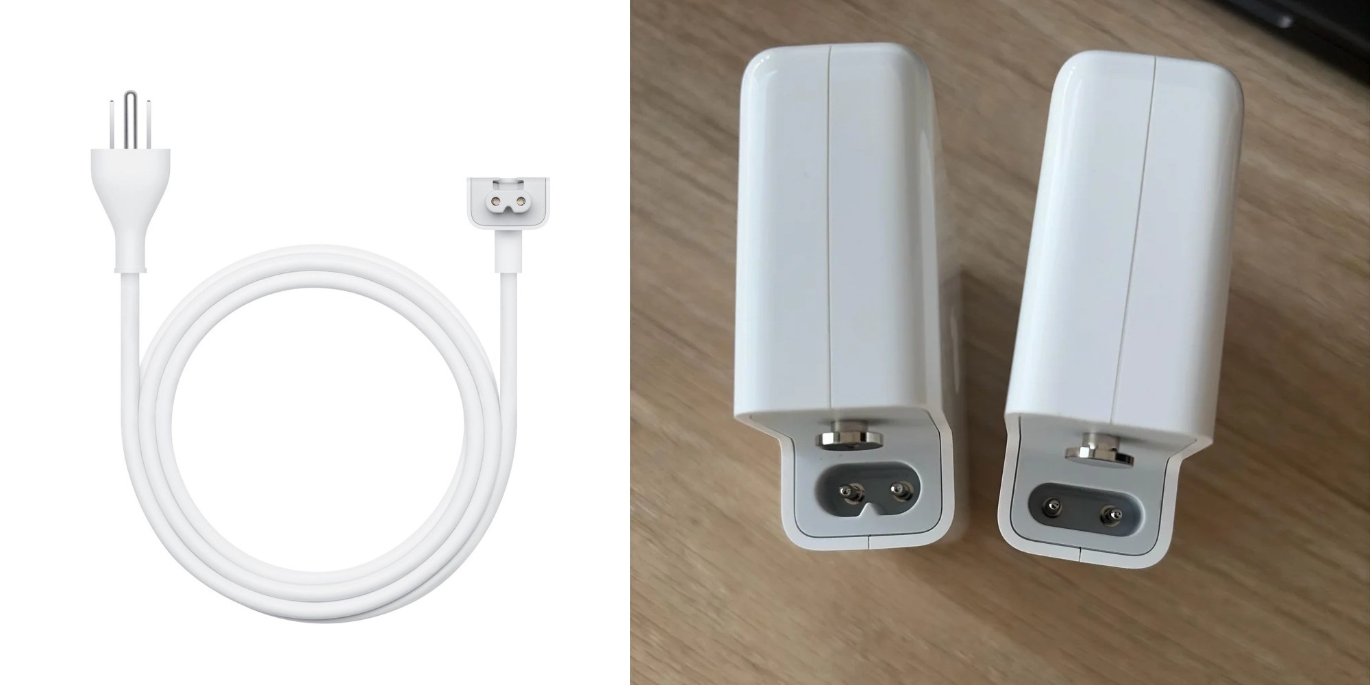 Apple power adapters with a removable AC wall adapter, or duckhead, traditionally use a C7 connection, which resembles the shape of a pair of glasses.