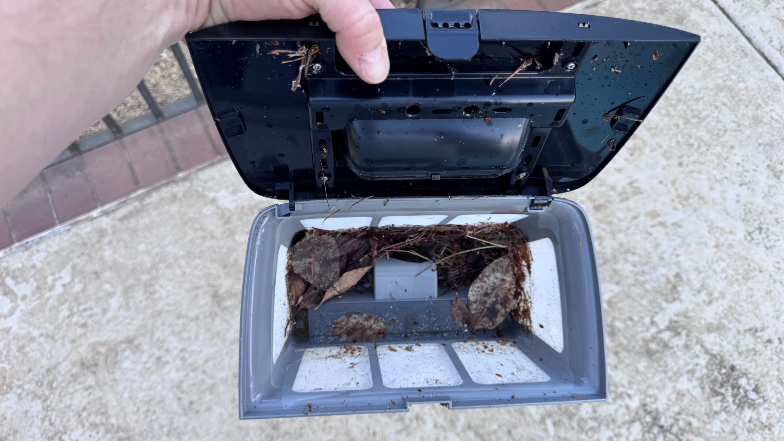 This mesh is so fine that it doesn’t just trap leaves and twigs; it captures that incredibly annoying, cloudy silt and fine sand that usually blows right through the exhaust of cheaper robotic vacuums. You can pull the micro-mesh filter out and use the standard filter if you want. I’m located here in Western Oregon, where I do not need to deal with sand or fine debris, as you might get in Arizona or Nevada, so I typically stick with the standard filter.