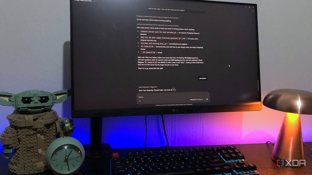 Claude is open on my screen most of the day regardless. Obsidian is where most of my notes live. Having them talk to each other is the kind of thing I should have set up way earlier – the only thing that stopped me was a wrong assumption about how complicated it would be. For general vault organization and day-to-day note retrieval, the filesystem connector covers most of what I actually need. Just be smart about what you let it touch.
