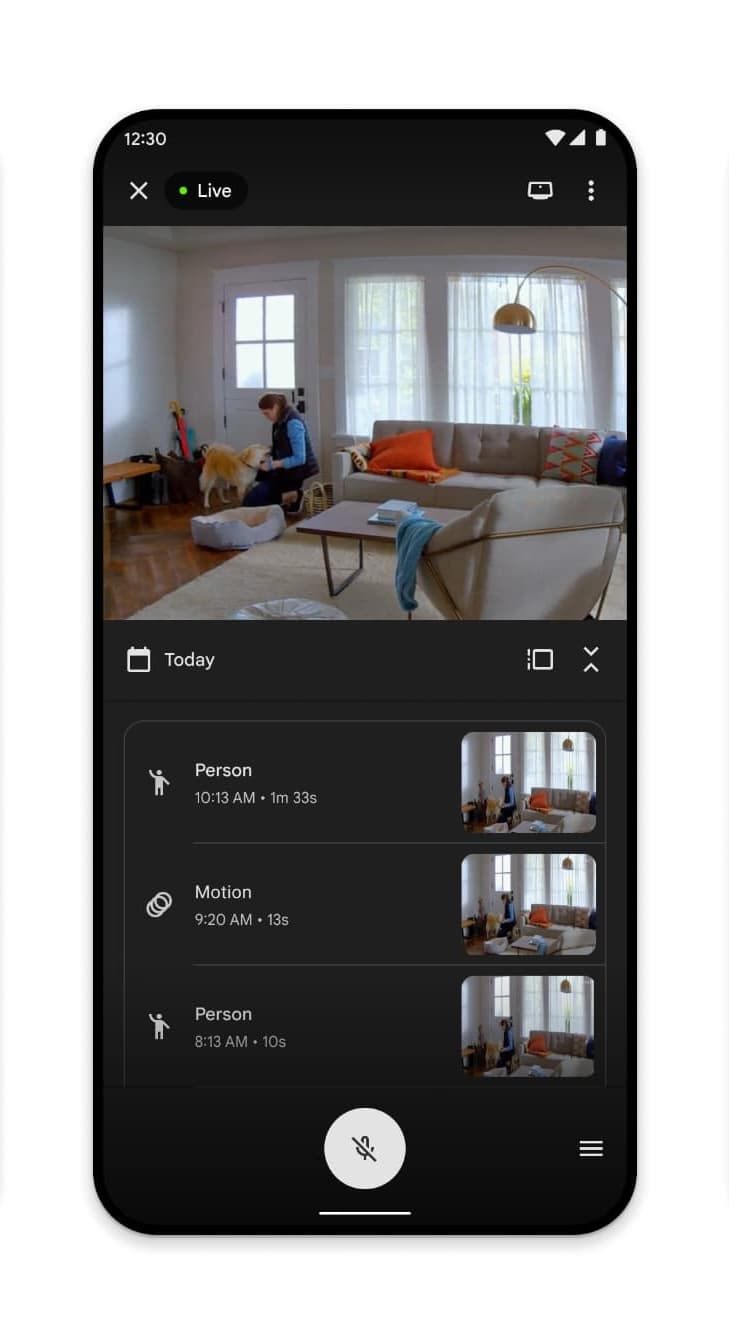 Starting with the Google Home app, an “Updated Camera Experience” is beginning to roll out. This modernization adds dynamic theming, while “key features [are] more easily accessible and discoverable,” especially at the bottom of the screen.